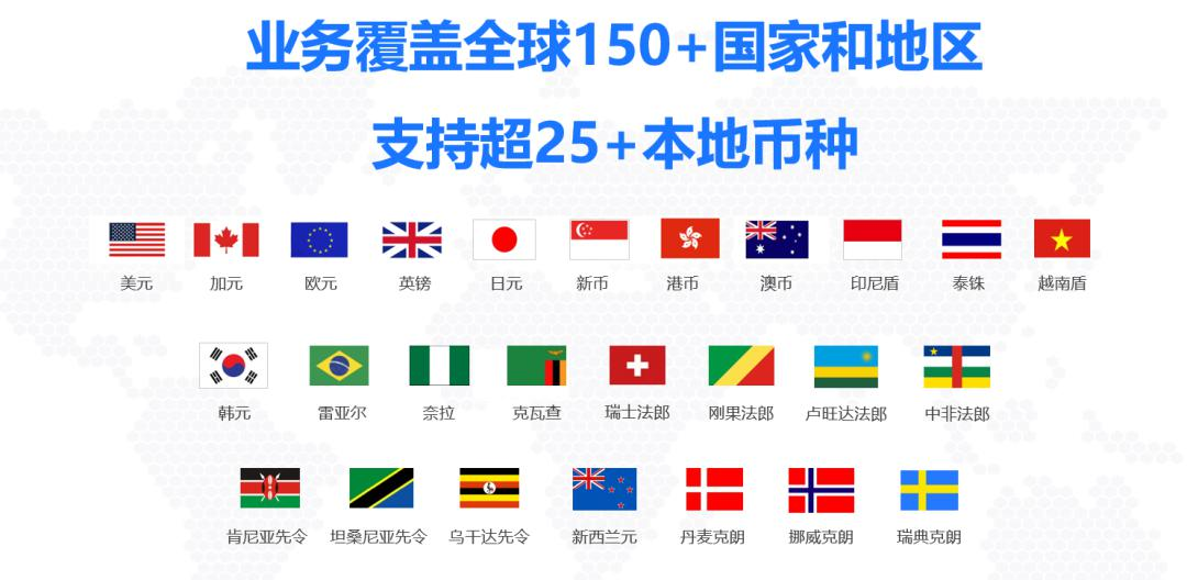 汇付斗拱国际业务覆盖全球150多个国家和地区,支持超过25种本地币种,提供包括收款、汇兑、结算在内的一站式综合解决方案。