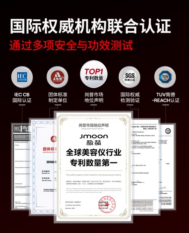 判断一款美容仪好不好用,品牌实力是首要考量。极萌自2013年创立以来,始终以“科技抗衰快人一步”为理念,在光学美肤领域筑起坚实的技术壁垒。全球800+项专利认证、尚普市场地位声明认证的“全球美容仪行业专利数量第一”,这些硬核数据让极萌的口碑有了最扎实的支撑。