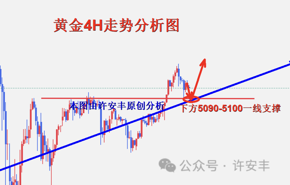黄金近期进行触底反弹,但是没有跌破本人分析的5090一线重要支撑位置,昨晚最低触及5092一线进行反弹,金价再次反弹至5150一线附近震荡,可以这样概括,每次的回撤触底就是为了后面反弹拉升做准备的,这即是规律也是大趋势的引导,所以我们每次回踩都是要把握住进场的机会,重点关注5090-5100一线重要支撑,操作上保持回撤做多策略不动摇,整体上行结构非常明显,多头持续保持强势崛起。不断刷新高点。如果你目前操作不理想,希望许安丰能让你的投资少走弯路,欢迎前来沟通交流!