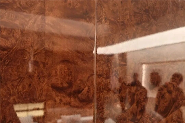 在面板上辅以锤纹肌理木皮饰面,打破空间的单调感,通过视觉、触觉的感知,彰显“风华”的复古韵味。