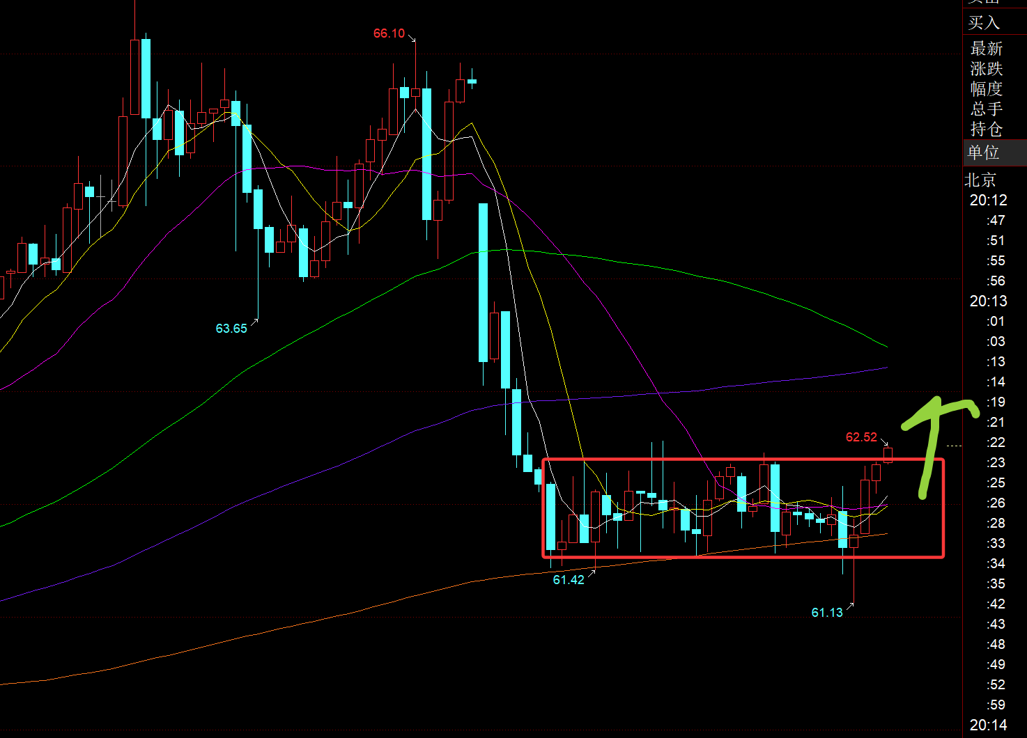 原油方面:昨日回踩直接失守日线年均线或前期通道的上轨支撑,这点有点意外,好在坚守稳住了61关口; 底部小范围区间整理了24小时,仍是以61作为支撑点,守住则倾向于向上反弹,要重新站上63,则可以延续拉升;