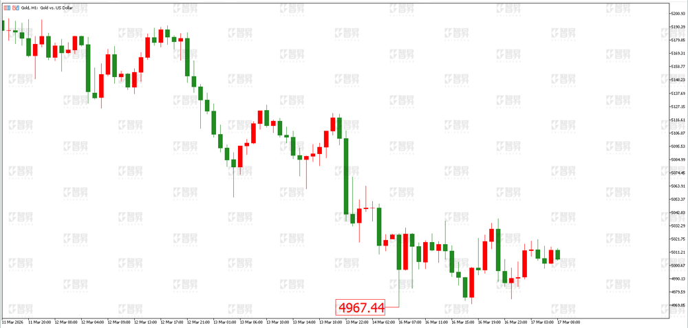 技术面:黄金昨日(3月16日)下跌至4967美元后,围绕5000美元上下震荡。短线来看,若不能上破5050美元,则有望进一步下跌,下方关注4920美元一线的支撑。