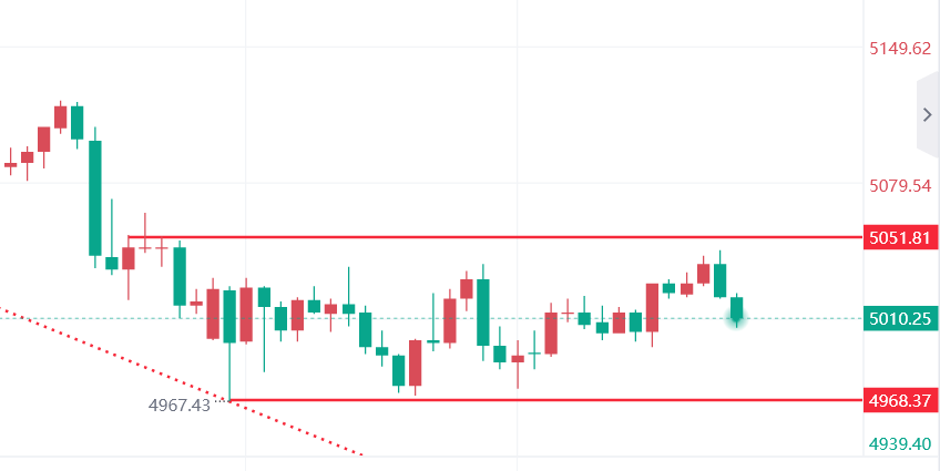 国际黄金分析:黄金上周收盘空头信号明显,本周整体呈现震荡偏弱运行。今日重点关注5050关键阻力区域,若金价持续在该点位下方运行,逢高做空仍是明智之选。当前盘面呈现出典型的震荡慢跌格局。日线级别显示金价处于空头排列,MACD指标维持死叉形态,绿柱温和放大,空头动能正在逐步释放。4小时级别更值得关注:布林带呈现窄幅运行,金价围绕中轨下方震荡,RSI指标在40-50区间波动,尚未进入超卖区域,反弹力度微弱且缺乏持续性。