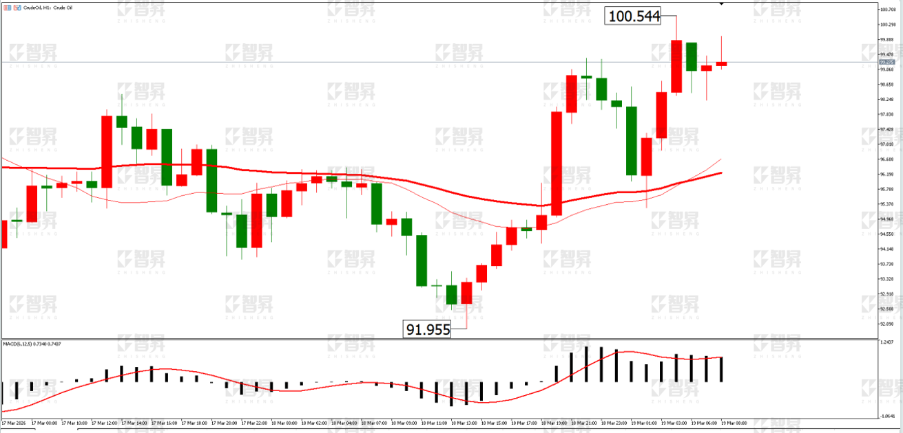 技术面:日线上,上一个交易日行情再度走高且收阳线,显示短期行情较为坚挺。4小时线上,行情沿着62日均线走高,短期有望延续。日内关注下方95美元一线支撑情况。