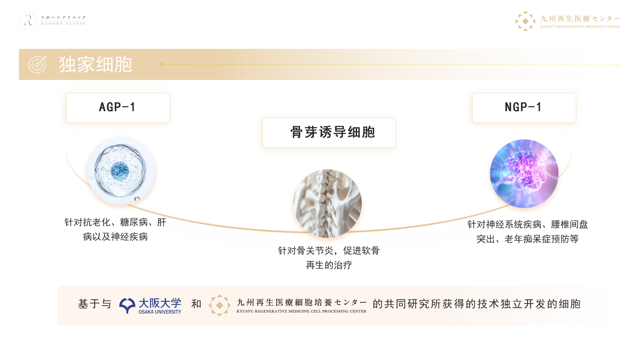 AGP-1 超级干细胞已正式在旗下 Reborn Clinic 投入临床治疗,在综合抗衰、2 型糖尿病治疗及神经疾患治疗等领域展现出卓越潜力,凭借精准的细胞调控与高效的治疗效果,为难治性代谢疾病与神经轻症患者带来了全新治疗方案;
