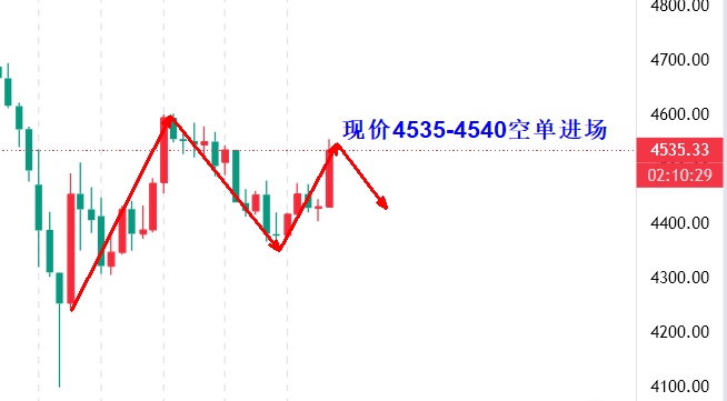 黄金建议:现价4535-4540空单进场 止损4555 目标4490-4480