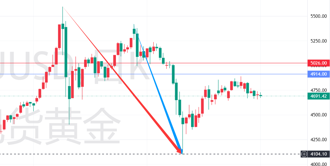 技术面解析:日线级别上看,金价自5600的回撤很明显,两次的快跌后再经过慢反弹调整,现在的走势处于第二次的反弹。现在盘面上看,关键的阻力位处于4914到5026区间,这里是5600到4099和5419到4099的618位置,故中长期上需重点关注一下这里的压制情况。
