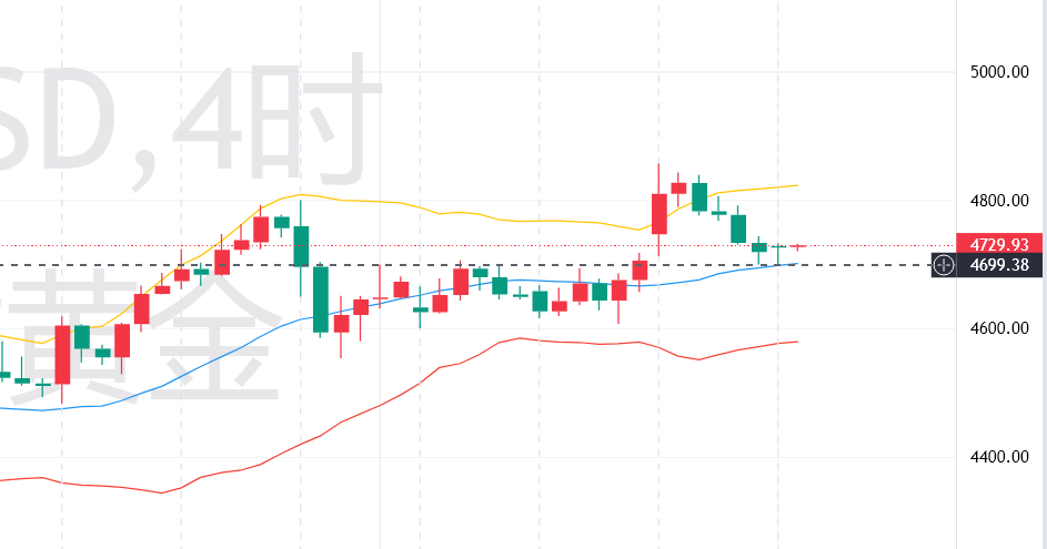 四小时级别来看,从K线形态来看,昨日金价冲高至4850美元附近后,连续收出4根阴线,形成明显的冲高回落走势,该位置形成了明确的顶部压制,后续反弹过程中,目前K线呈现小阴小阳交替排列的态势,多空双方博弈激烈,没有一方能够占据明显优势,金价需回踩下方支撑位确认有效性后,再选择后续运行方向,整体呈现震荡偏空的短期格局,但下方支撑同样强劲,难以出现大幅下行。多头若想扭转当前弱势格局,必须站稳4750美元关键阻力位,且需要成交量持续放大配合,才能打破顶部压制,推动金价进一步反弹,上看4780-4800美元区间;若金价未能突破4750美元阻力,且跌破4690美元关键支撑位,将打开进一步下行空间,下探4650美元附近,甚至测试4600美元关口。对原油/黄金/外汇等投资不够理想的朋友,可以添加秦氏金升(官微:QSJS368),学习看盘分析,能长期站稳外汇市场,都是投资理念正确、操作方式合理者,这里有很多经验分享给大家。